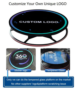 Free Logo Plates can be supplied after 360 photo booth is received, please send us your logo via contact us include your order confirmation No. and this will be dispatched within 10 days.