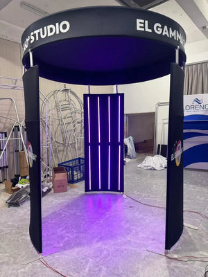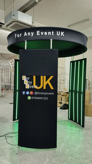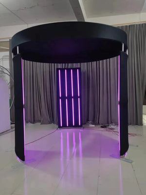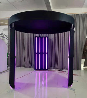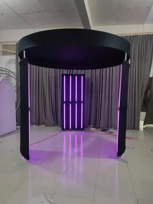 Transform your 360 photo booth into a stunning visual centerpiece with our premium 3-piece LED enclosure. This vertical circular design features 24 RGB LED light strips for spectacular color-changing effects, creating a professional 8ft diameter setup that commands attention at weddings, corporate events, and brand activations.