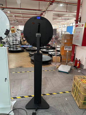 Impeccable Design: This photo booth is in new condition, featuring an aluminium stand and powder-coated finish.